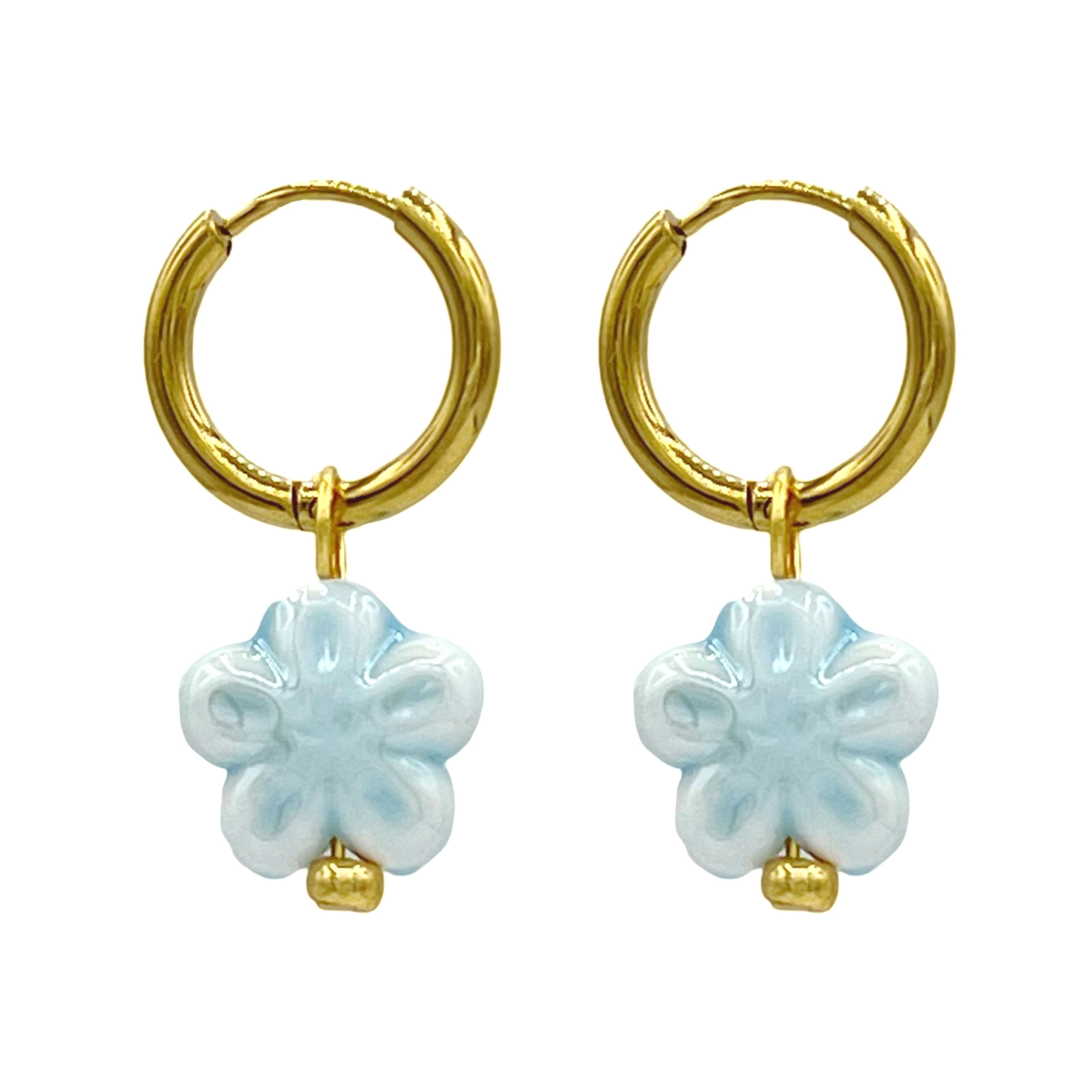 blauwe fleurie oorbellen