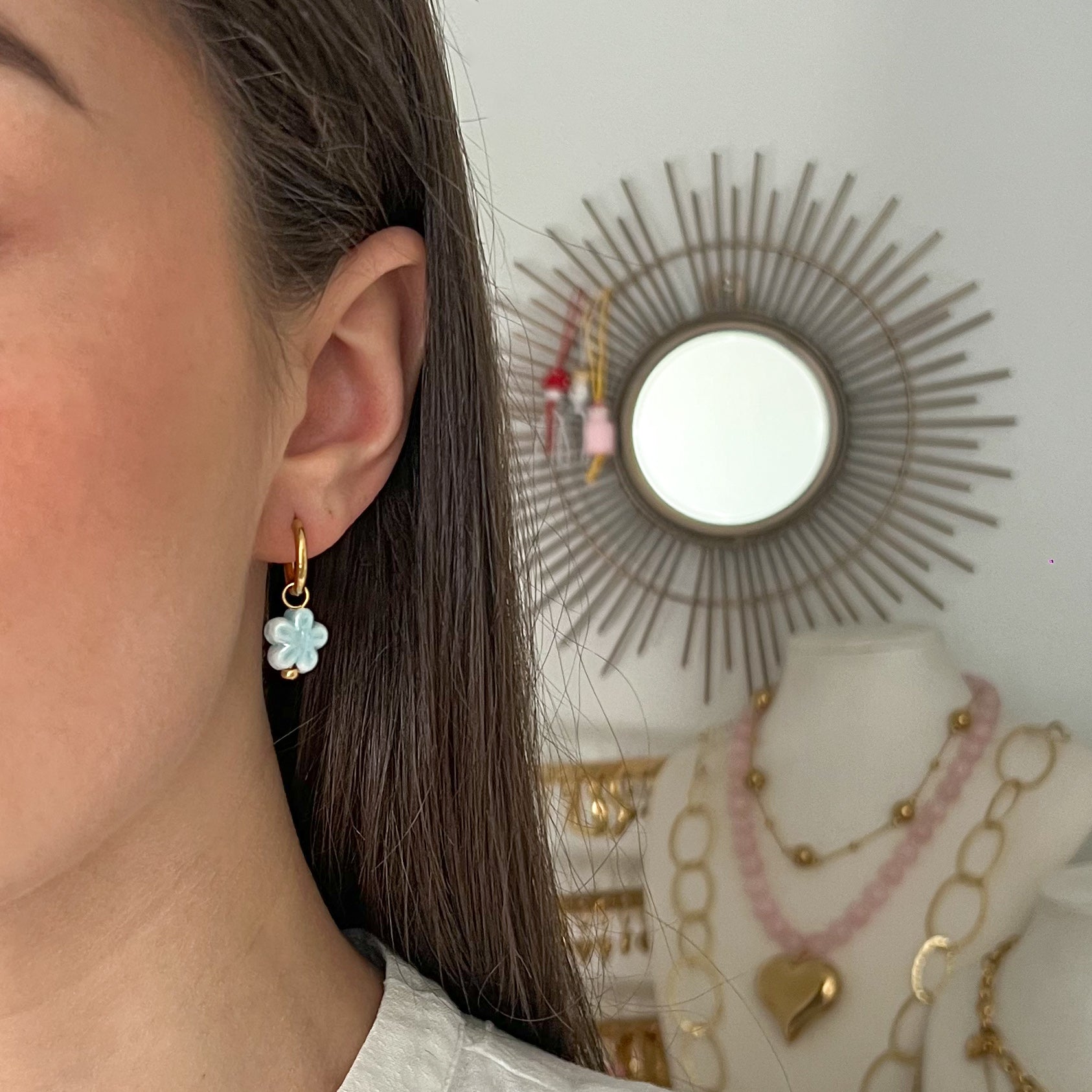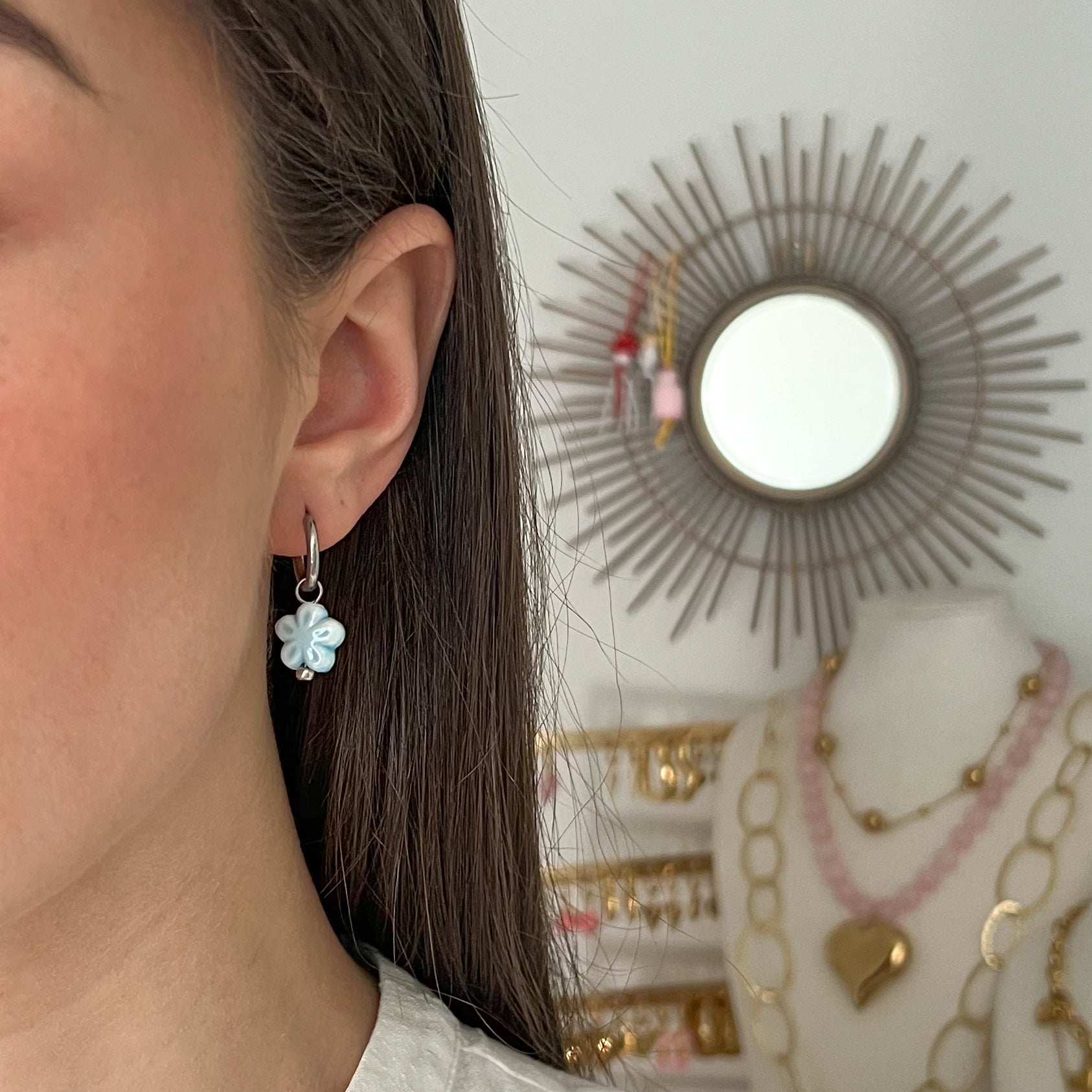 • blauwe fleurie oorbellen