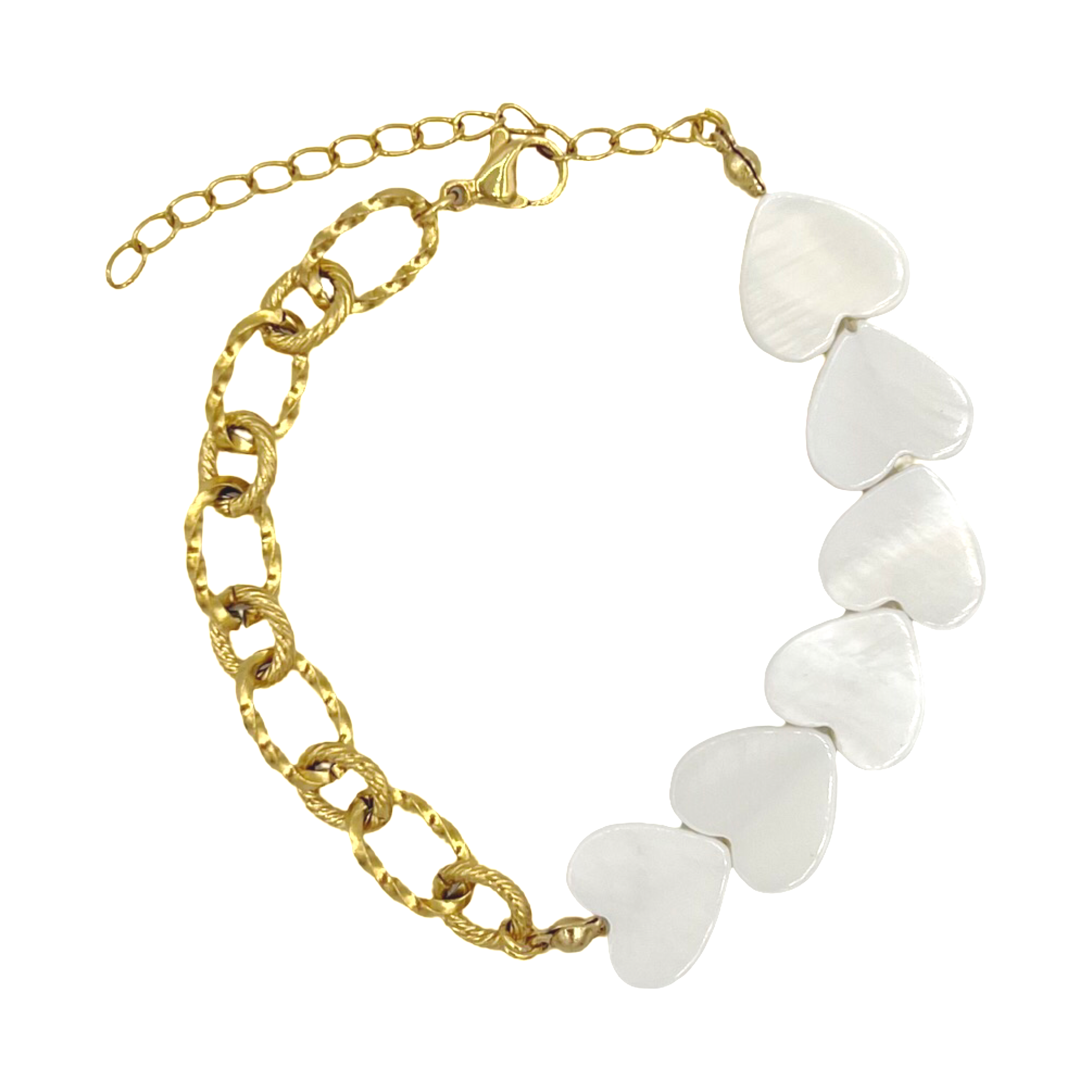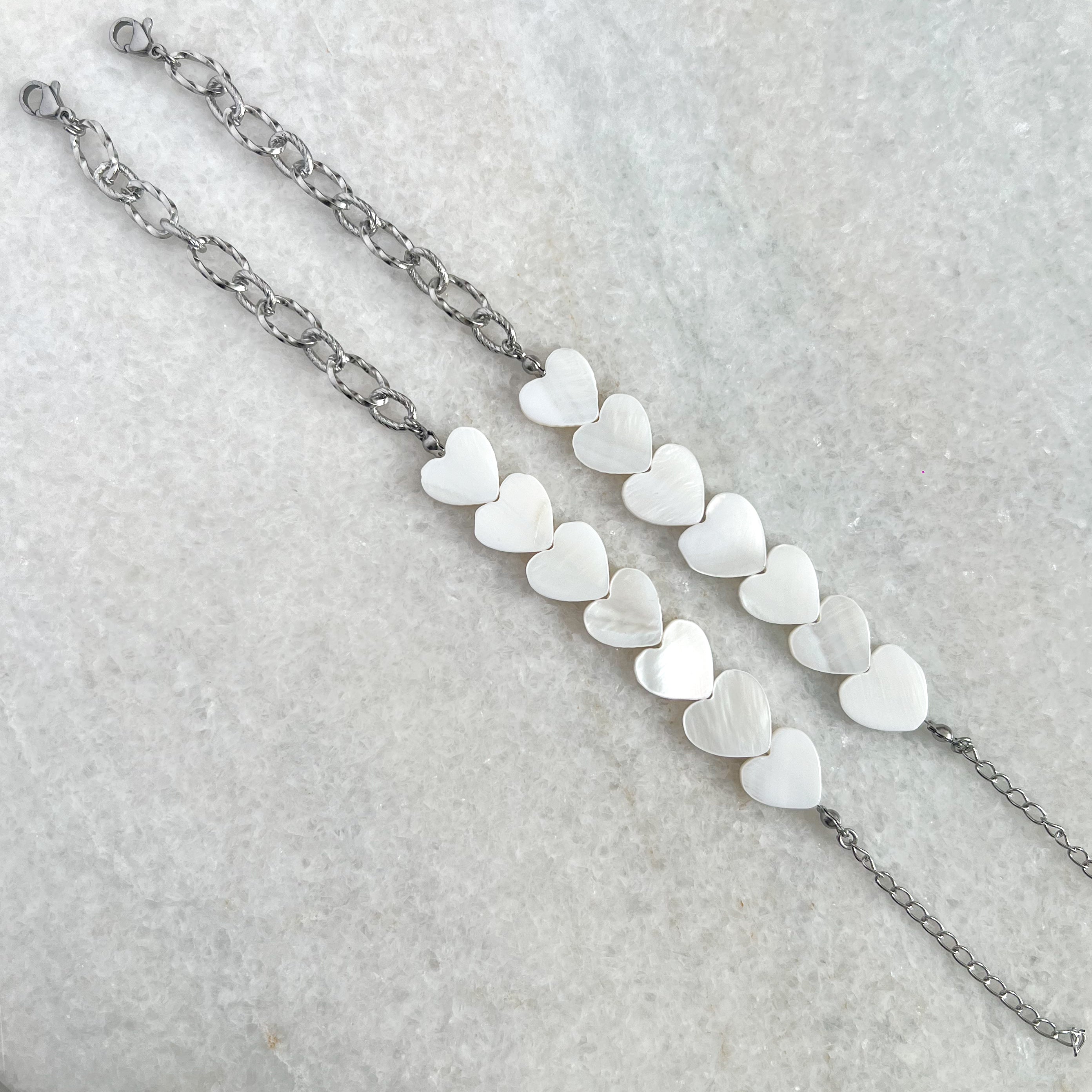 • materiaal: stainless steel (RVS) / schelpenkralen
